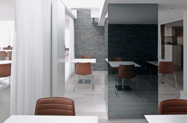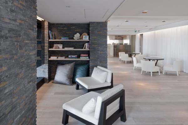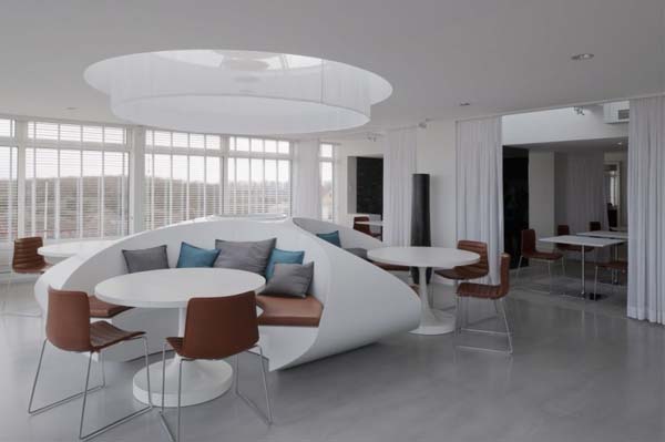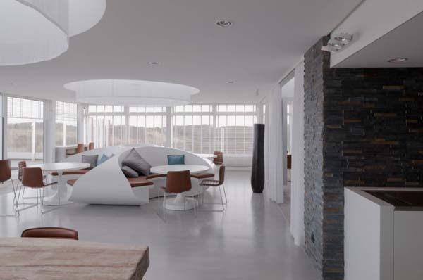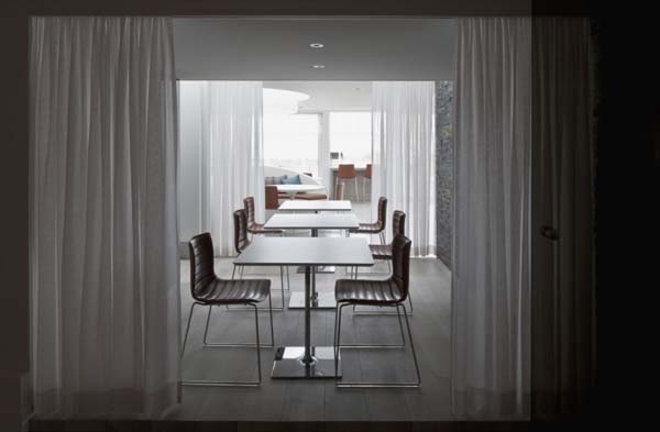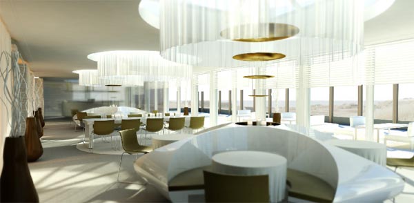 The structure of this restaurant is divided in different zones, each of them reflecting various designs and organization. No matter where you choose to sit, the restaurant offers some amazing panoramic views that can be enjoyed from every zone of the restaurant. The interior design is filled with light thanks to its large windows, and features oval sitting islands that represents the focal point, and creates a relaxed atmosphere.