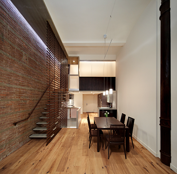 Silverong transformed a house that was renovated in 1978 into the Union Square Loft. The house had impractial room arrangements, quirky spaces so the architects had a lot to work. The focal point was the redesign of the stylish stairs which connects the mezzanine, the first floor and cellar level.