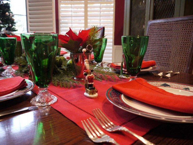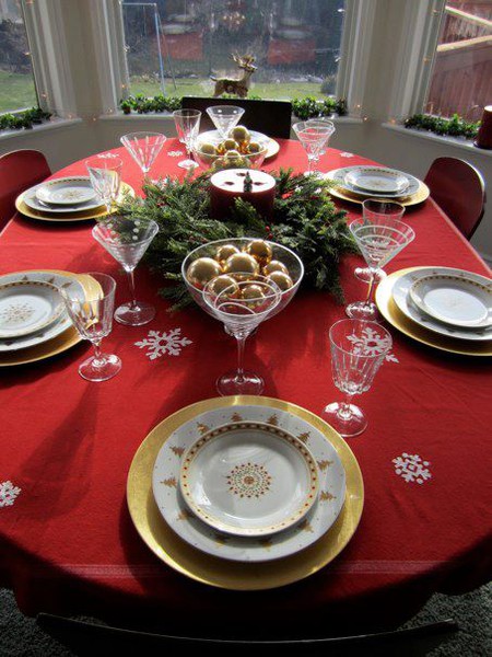 Christmas table could enjoy a green table cloth, a splendid décor consisting in fir tree branches, full of fresh flavor of resin, combined with blue balls and little burning candles, providing intimacy, together with the crystal glasses, all these aspects inducing the glamorous feeling of this important celebration. Maybe I could combine red and green, thinking of Santa’s little elves, and I would set the table in white, with green napkins tied up with red ribbons, fresh fir tree branches and here it is a real Christmas festivity!