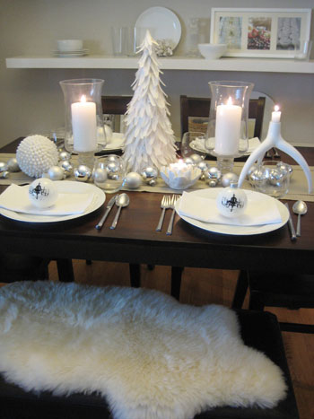 In my dreams, I have more than one version for the Christmas table. Sometimes I dream a completely white interior, which perfectly imitates the winter outside. I see myself setting a mahogany living table with white porcelain plates, white candles and a small white glamorous fir tree in the middle. The table enjoys the company of a fluffy white bear fur, creating intimacy and adding a plus of warm to this snowy elegant interior. The Snow Fairy could be my guest of honor!
