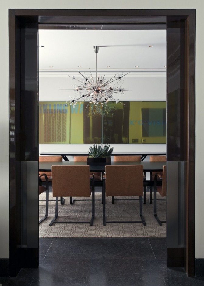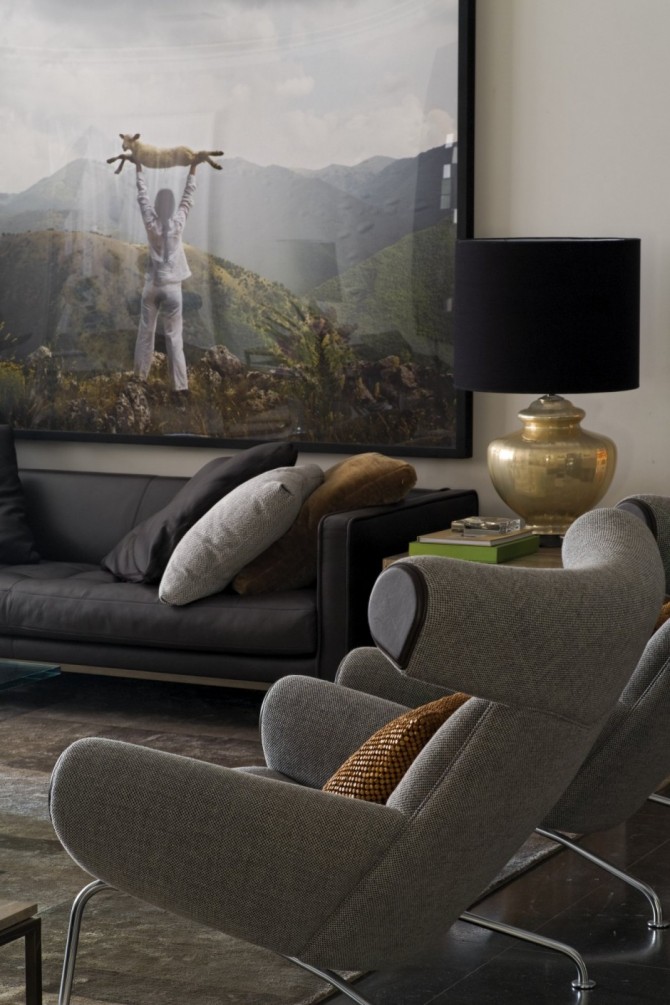 Beginning with the door and throughout all the other details, the project swings between modern and intimate, elegance being at first rank, creating very precise details and an airy, peaceful atmosphere. There are many modern details and interior design architectural elements, some of them astonishing, picking up your attention, as the pictures hanging on the walls and the illumination chandeliers. In spite of their opulence, the interior space looks simple and minimalist, with modern sober furniture, complex and meeting all the requirements. Spaces for taking dinner, spaces for resting in front of the nice and cozy fireplace, spaces for reading a good book or meditating, all of them enjoying large windows and flooded by plenty of natural light, provide a peaceful, calm atmosphere.