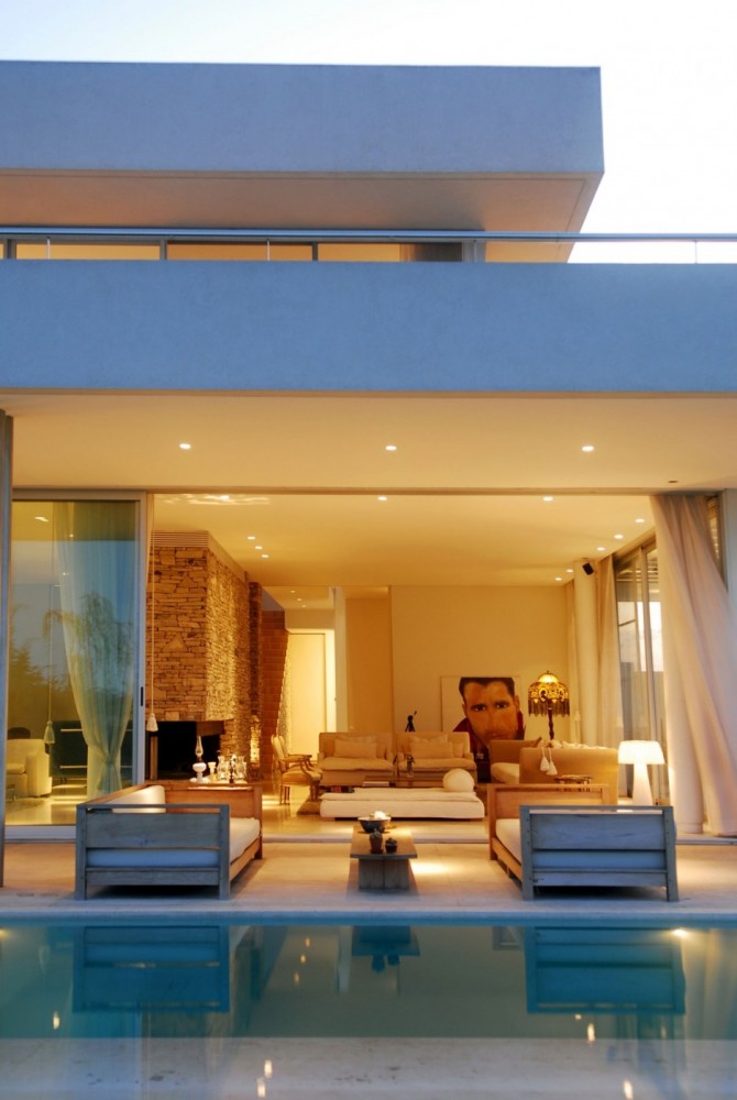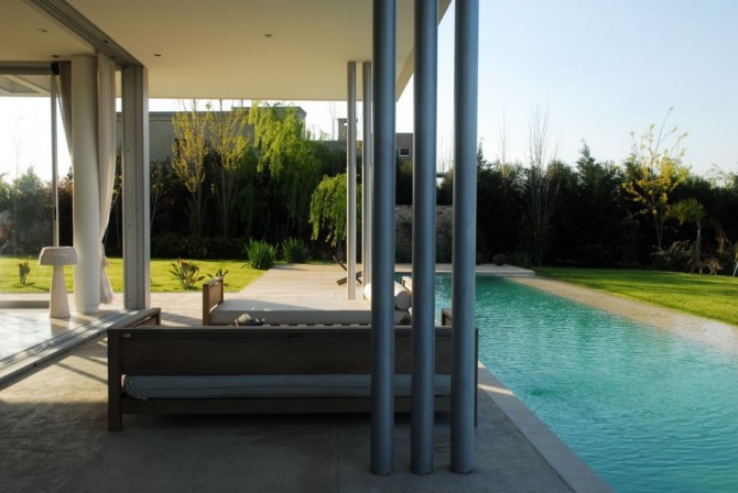 Agua House is designed by Barrionuevo Sierchuk Arquitectas and it is located in Buenos Aires, Argentina. The site has a beautiful view to the Canal Arias river and it has a ground floor, accommodating a very big reception areas, that opens and closes the big wooden sliding doors that hides into the wall.